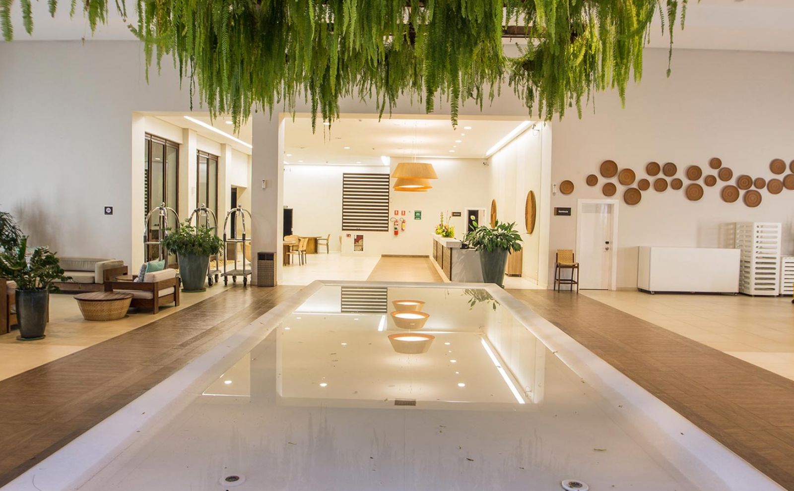 O Hotel Rio Quente Cristal Resort é formada por quatro átrios, inspirados nos quatro elementos fundamentais: água, terra, fogo e ar.