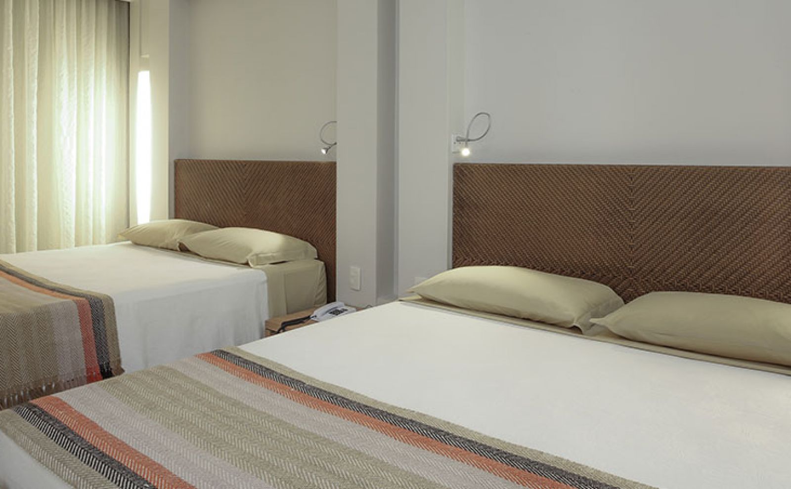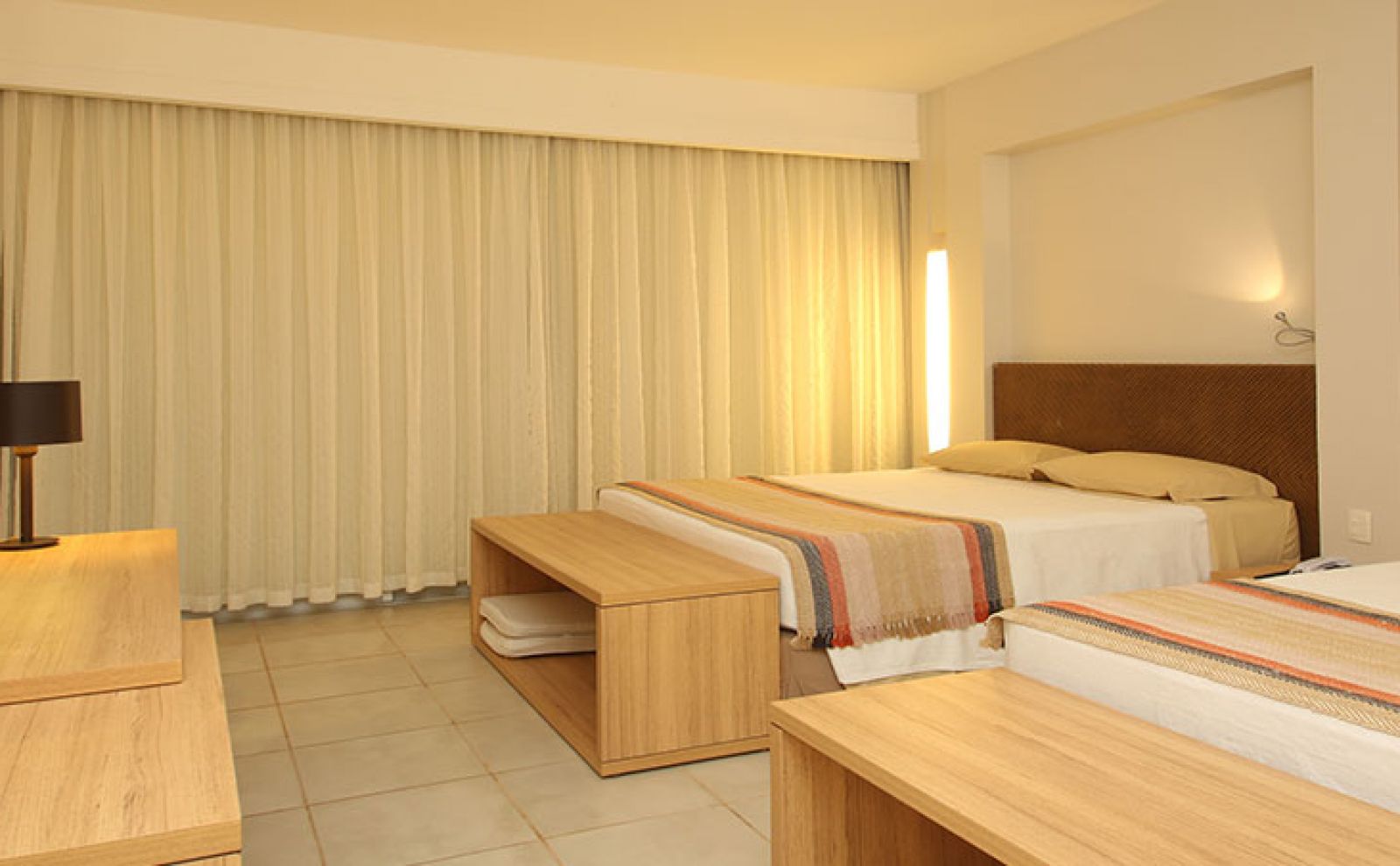 Acomodações perfeitas para acomodar até 4 pessoas. Compostas por quarto, banheiro, closet e sacada. Possuem duas camas de casal e opção de um berço extra.