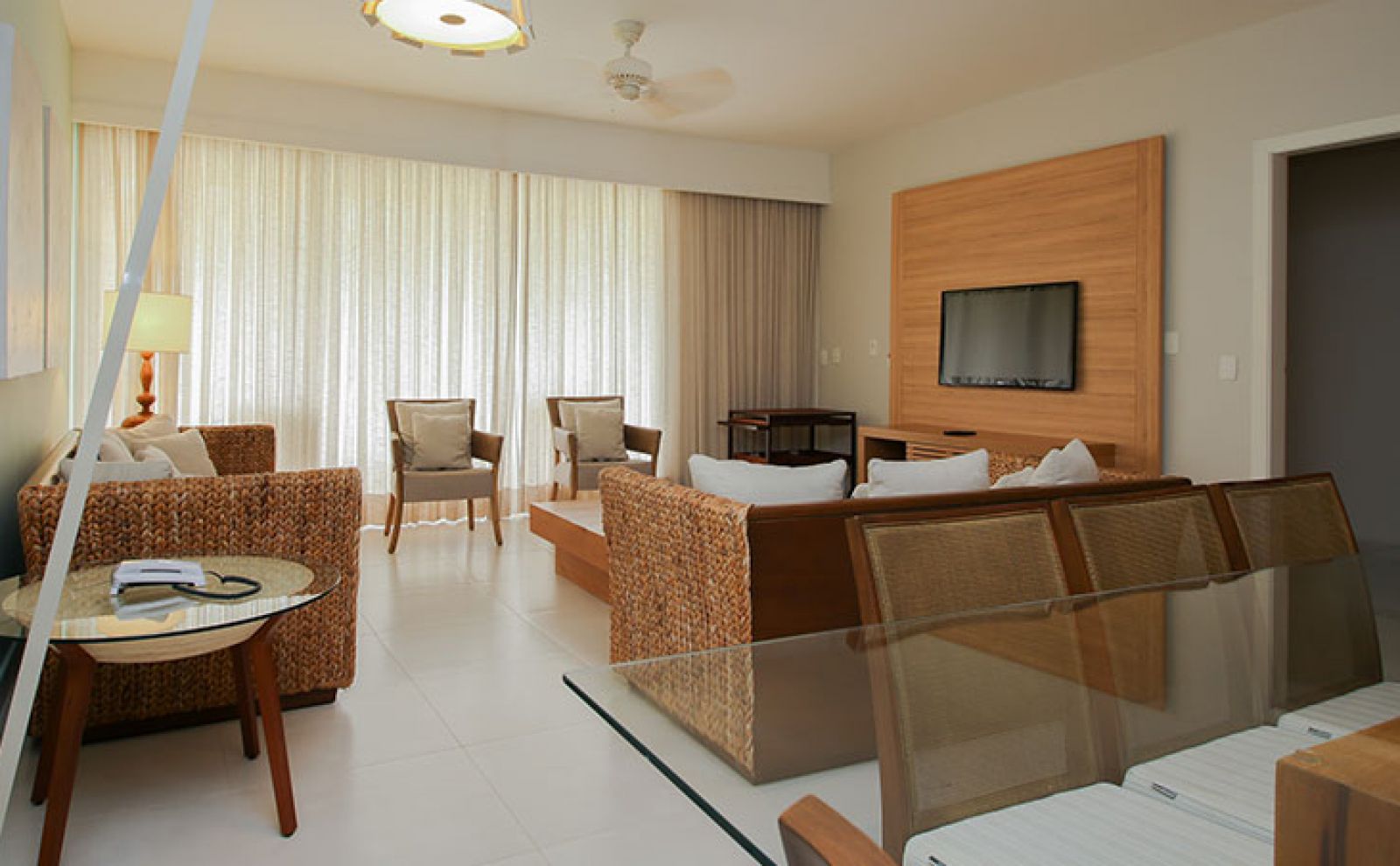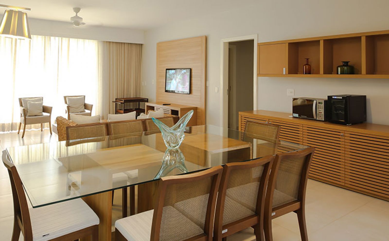 Com arquitetura contemporânea e alto padrão de conforto em hospedagem, a Suíte Cristal, situada no átrio Terra, é composta por dois quartos, sala de estar, jantar e varanda e acomoda confortavelmente 10 pessoas.